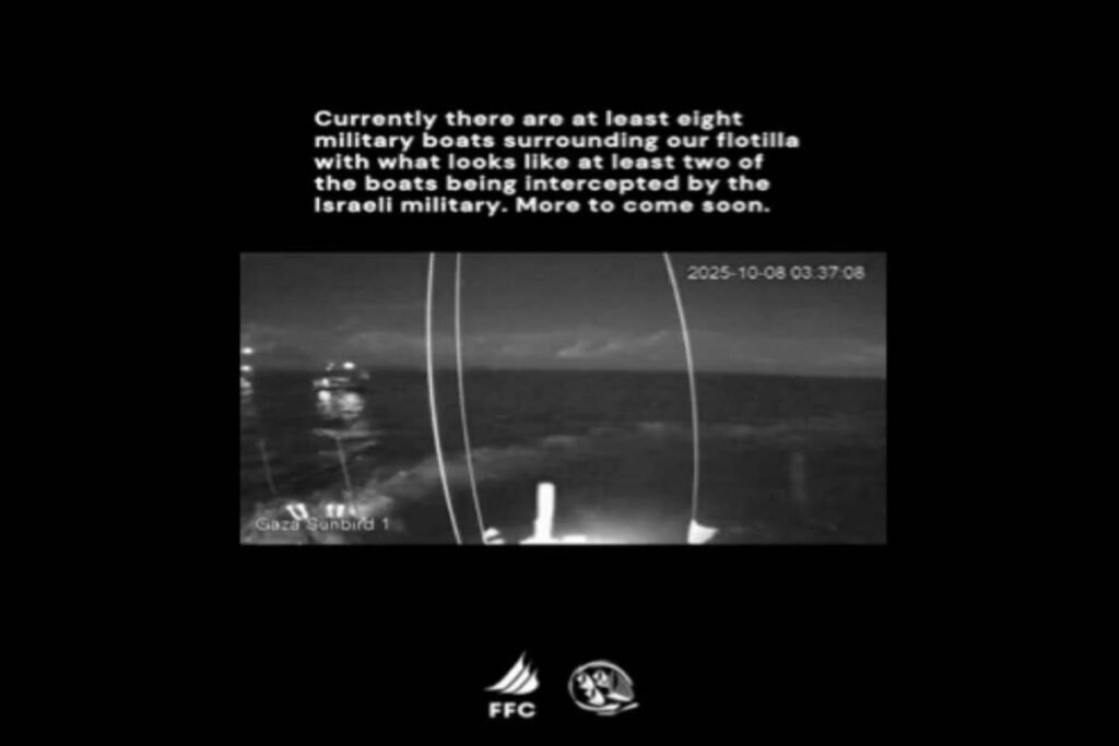 Forças israelenses interceptaram e abordaram uma flotilha de ajuda humanitária, a Global Sumud, que se dirigia à Faixa de Gaza na madrugada desta quarta-feira. A ação ocorreu em águas internacionais, a aproximadamente 220 quilômetros da costa de Gaza, segundo relatos da própria flotilha em sua conta no X (antigo Twitter).